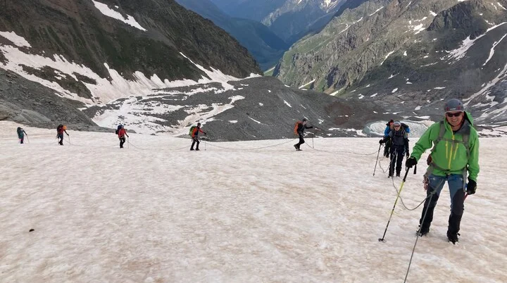 Von Vent im hintersten Ötztal startete Mitte Juli eine 9-köpfige Gruppe Bergsteiger unter der Leitung von Michael Schnitter und Björn Briel zur Fineilspitze und zum Similaun.
